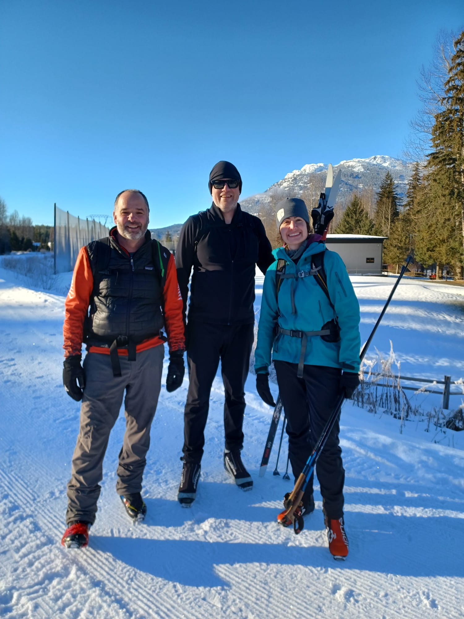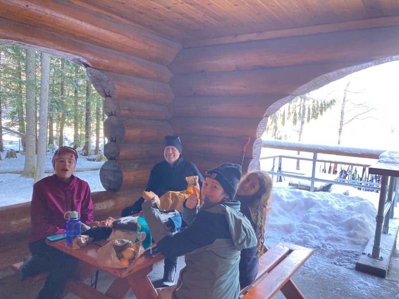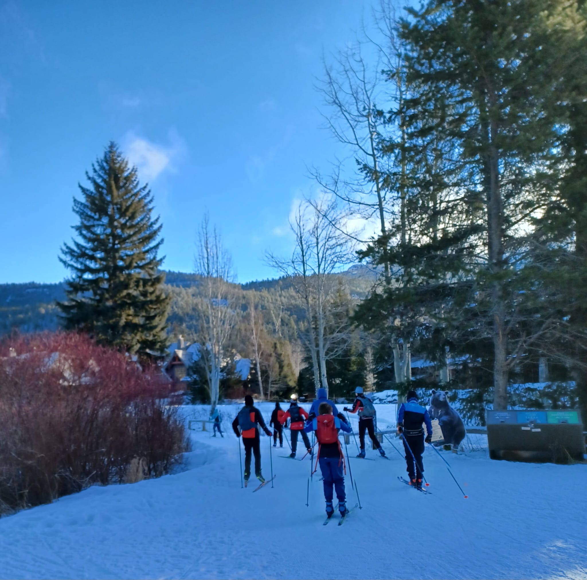 Today was a full day of adventure with the ski exchange group. We started with a hearty breakfast prepared by the parents, and grabbed pre-made sandwiches, fruits, and snacks for our lunch later. Afterward, we drove to Meadow Park Sport Center and set off on skis towards Lost Lake, where we enjoyed an ascent with stunning views of the surrounding snowy mountains.