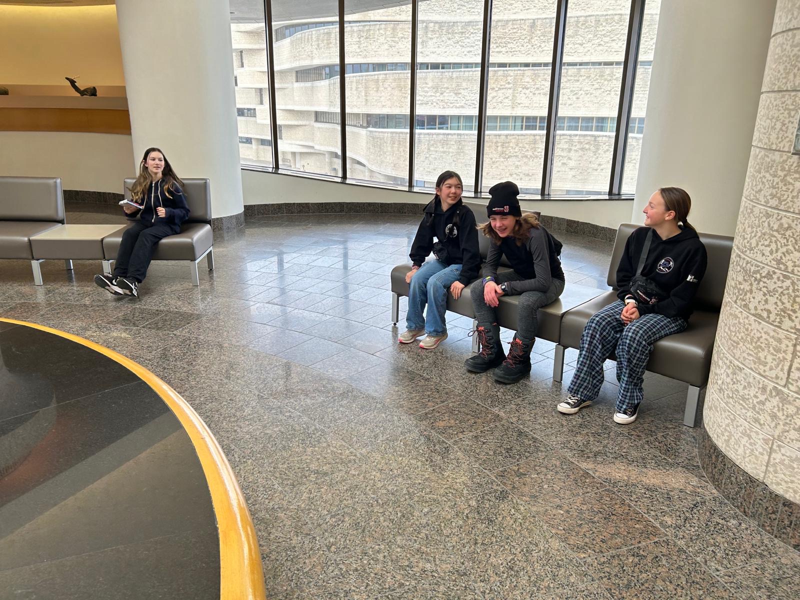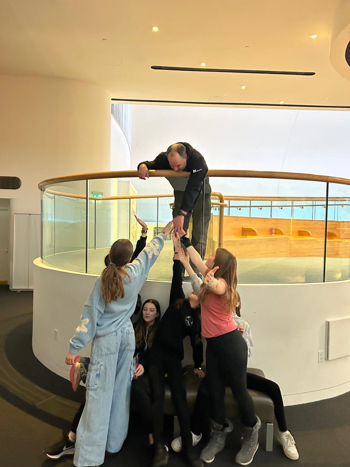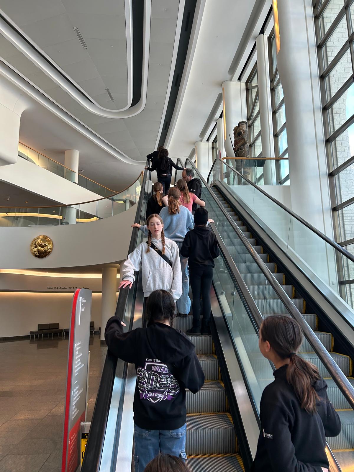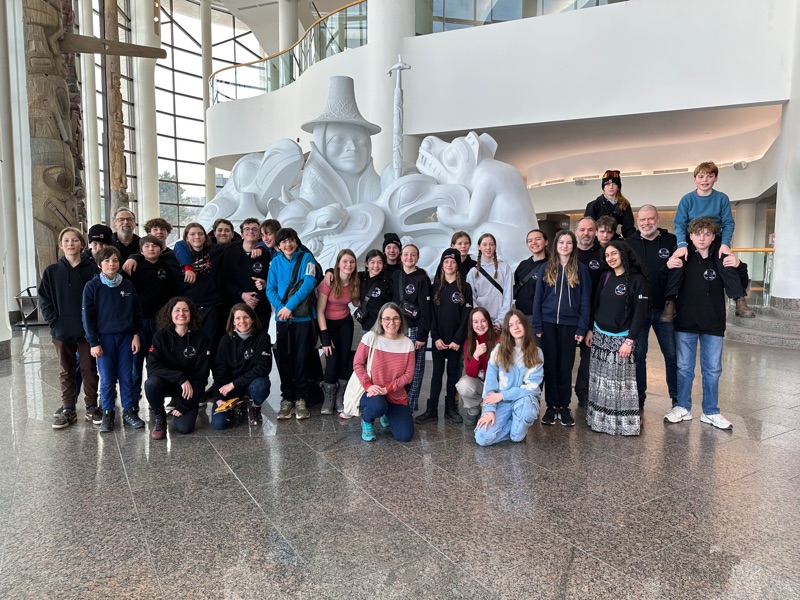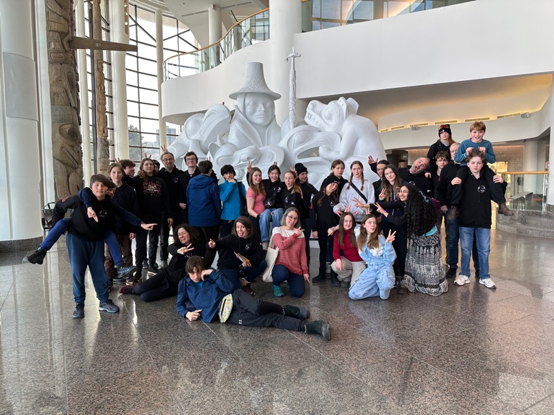 Today was an educational day for the group! Instead of cross-country skiing, we visited the Museum of History in Gatineau, housed in a unique, curvy building. The athletes explored fascinating facts about Canadian history and learned about beavers through a special exhibit. Since we love winter, we also enjoyed an amusing documentary about Antarctica. For the group photo, they got to see a replica of the famous "Jade Spirit of Haida Gwaii" statue by Bill Reid, a reminder of Vancouver (airport) and home.