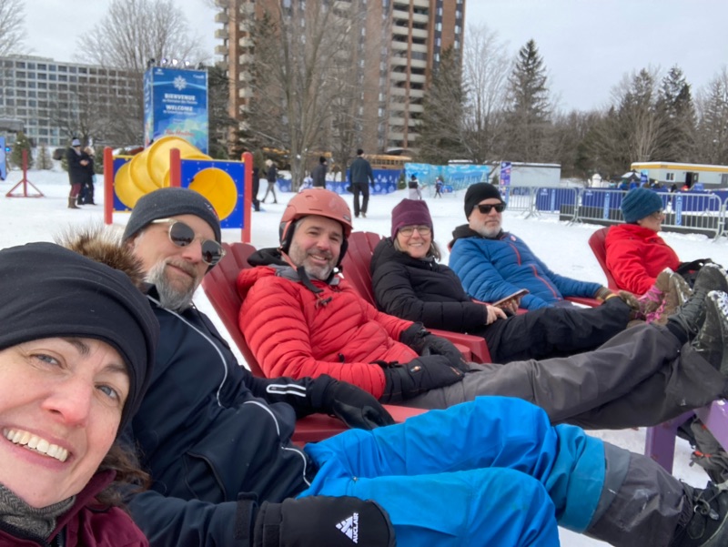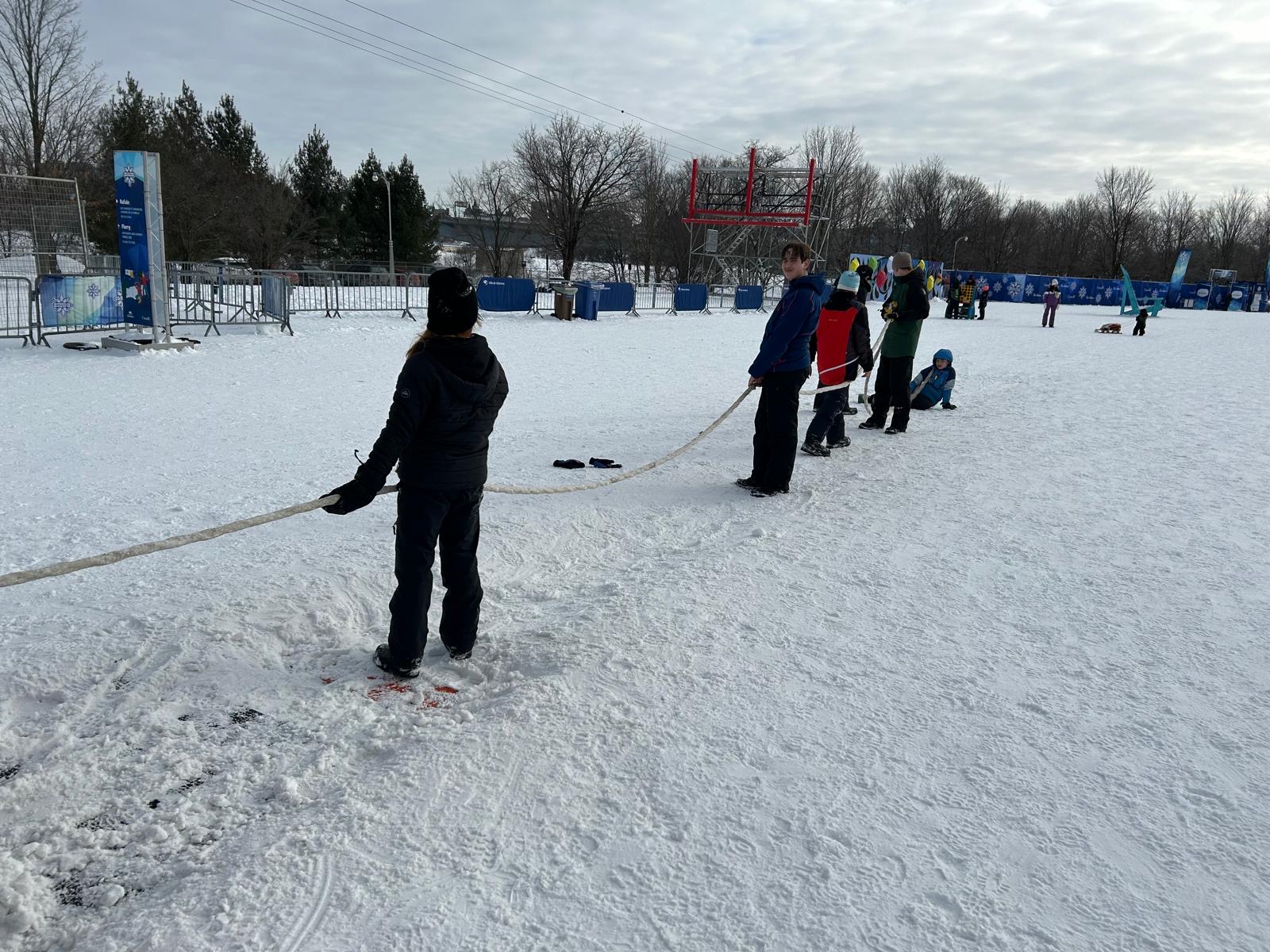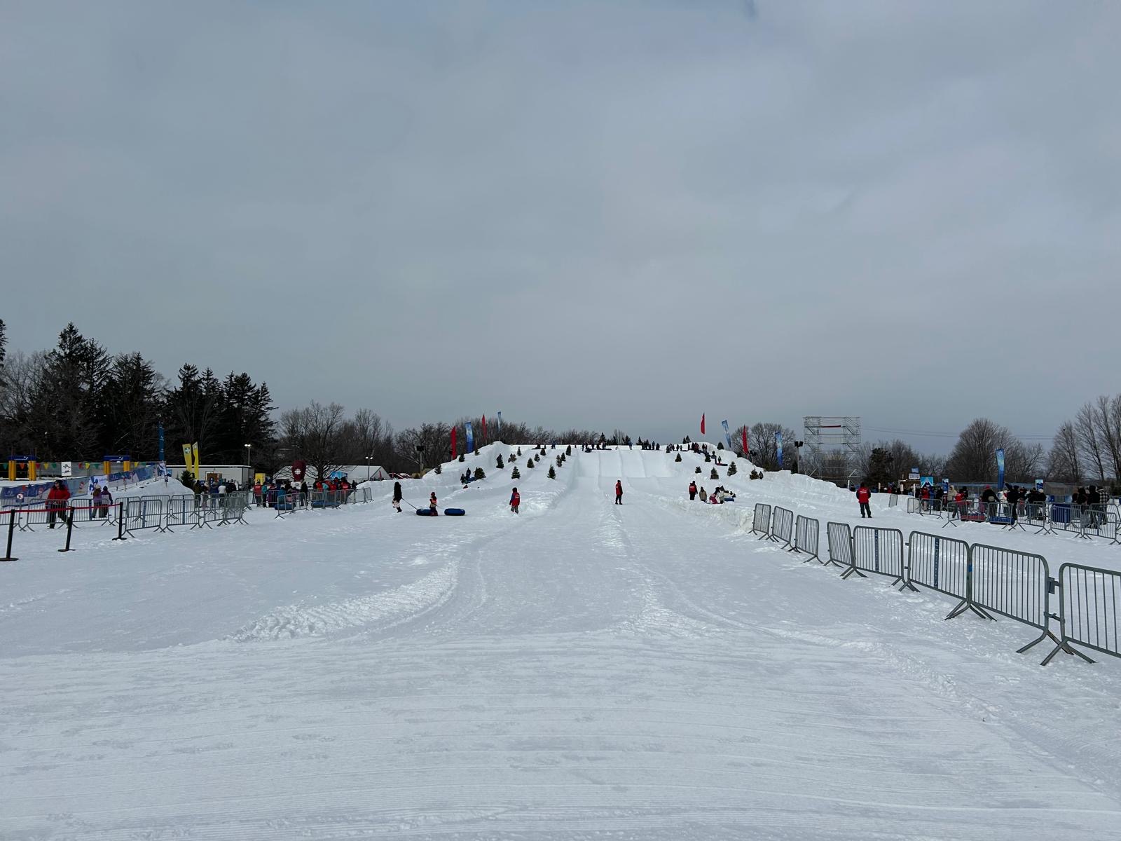 In the afternoon, we headed to the magical Kingdom of Winterlude Festival, where the athletes had a blast with activities like tube sliding, a maze, and an obstacle course. Coaches got to relax while enjoying a great view of the playground. A highlight of the day was 'taming' the Ice Hog mascot for a photo – the mascot was a little nervous with so many youth approaching, but we got a fantastic shot in the end.