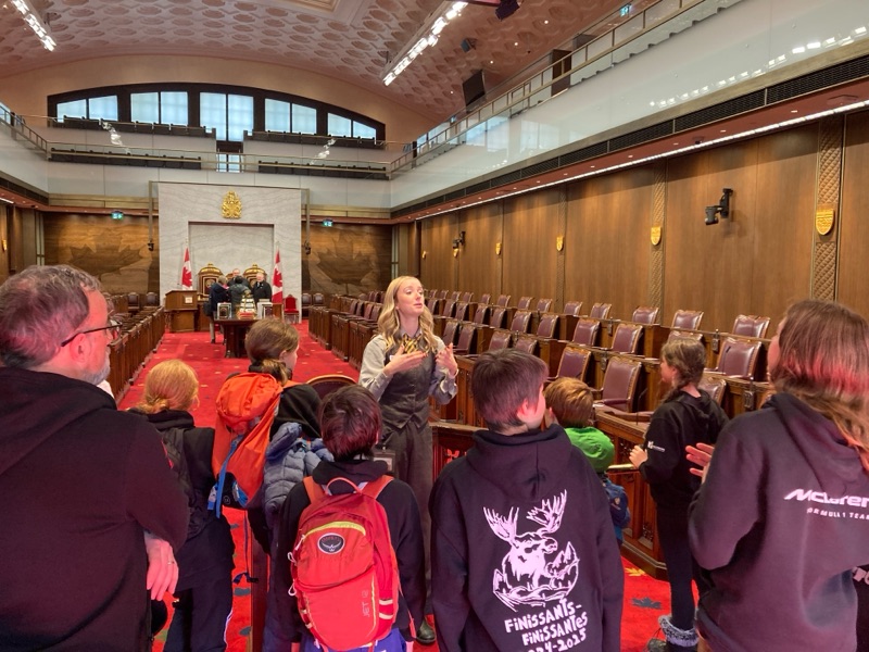 Today we explored again Canadian history and culture. We started our morning at the Eternal Flame, in front of the Peace Tower of Parliament, before embarking on a tour of the House of Commons. There was many curious questions from the kids about the process of passing bills and laws. We also learned that due to renovations, the central tower—once home to both the House of Commons and the Senate—has temporarily relocated, and the House of Commons now resides in the West Block.