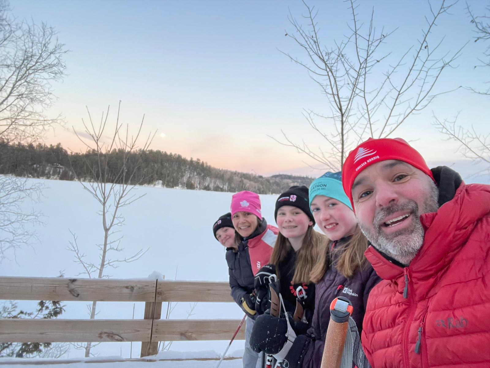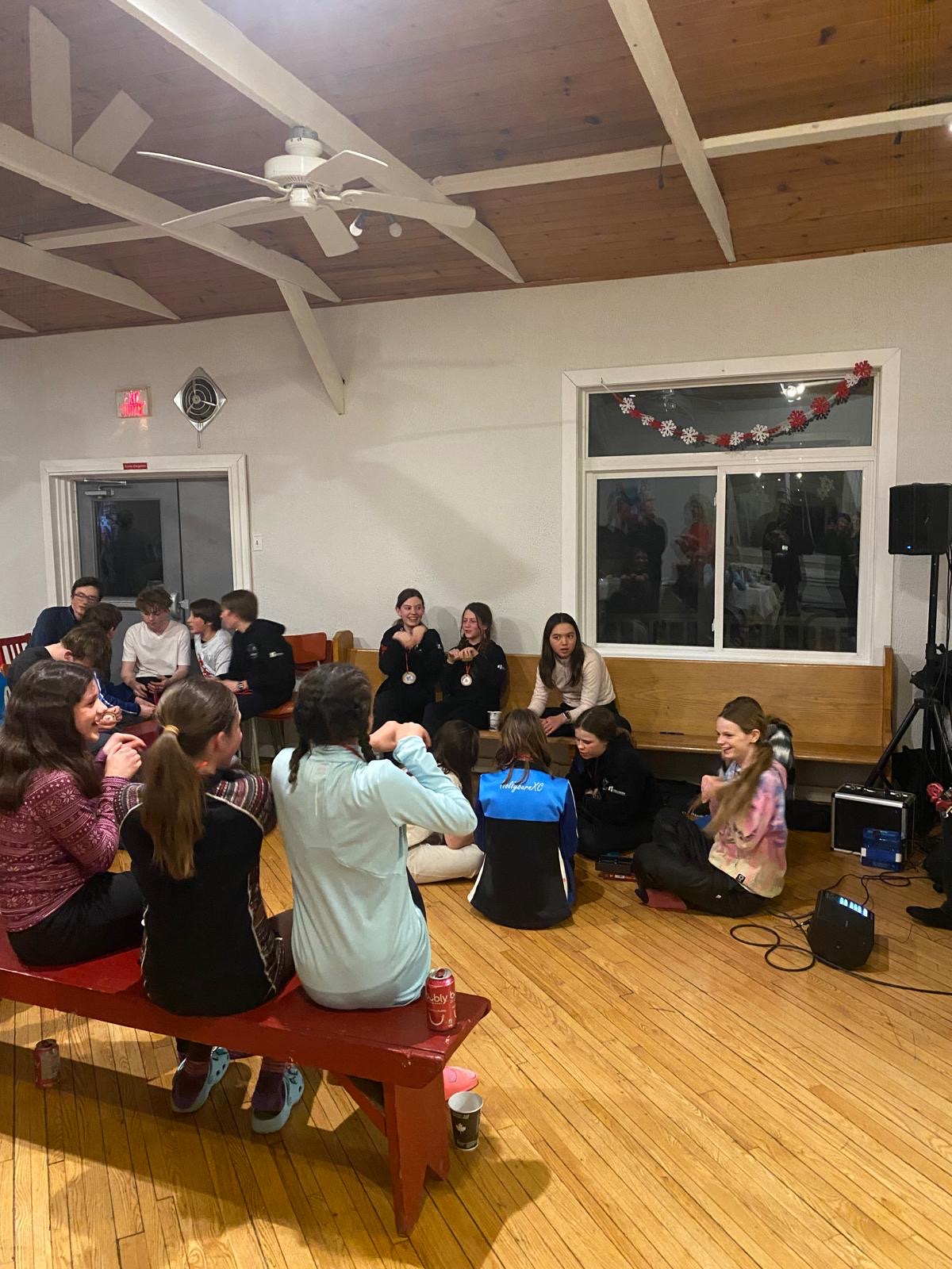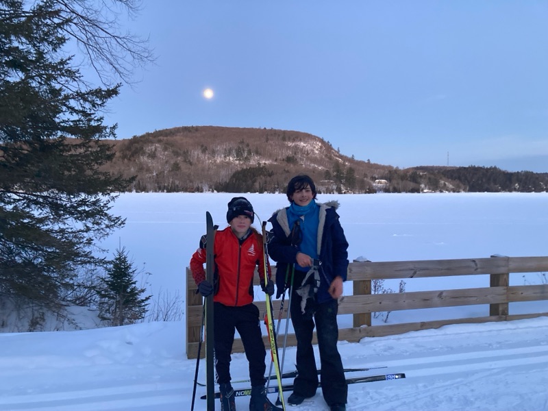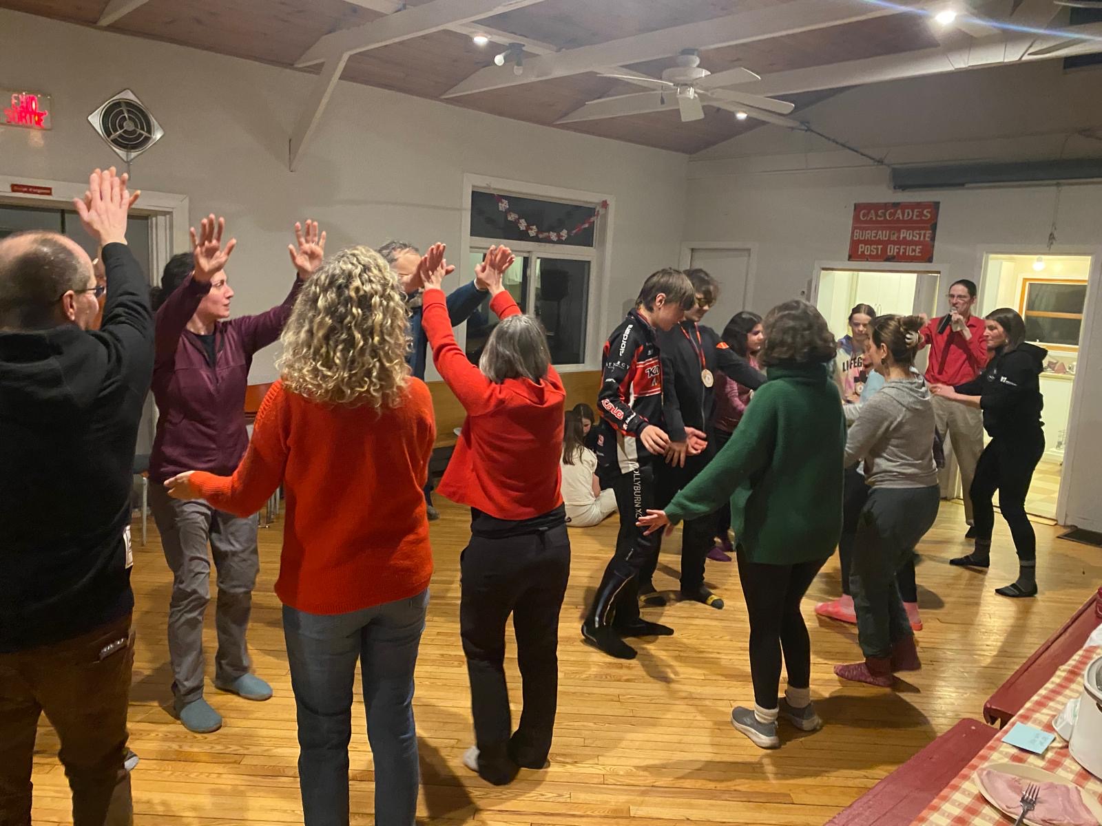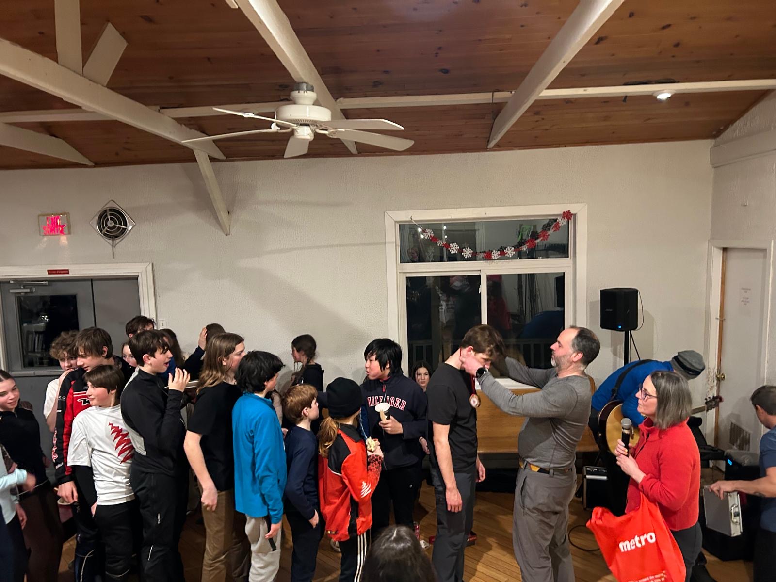 As the day drew to a close, we put on our skis and glided along the beautiful Gatineau River to the Cascades Club, which is part of a multi-sport trail built along an old railway track. The day ended with a delicious sugar shack meal, provided by our wonderful host parents, and the lively sounds of Acadian music. Greg and Dan started playing, and before long, everyone was dancing, guided by a professional dance leader who kept the energy high and the laughs flowing. We acknowledge the long distance that the athlete done last Saturday during our own marathon and, as a tradition in Chelsea Nordiq, we handed over medals to celebrate their milestone!