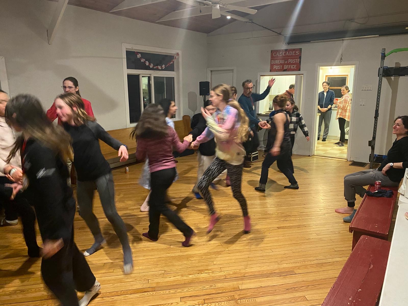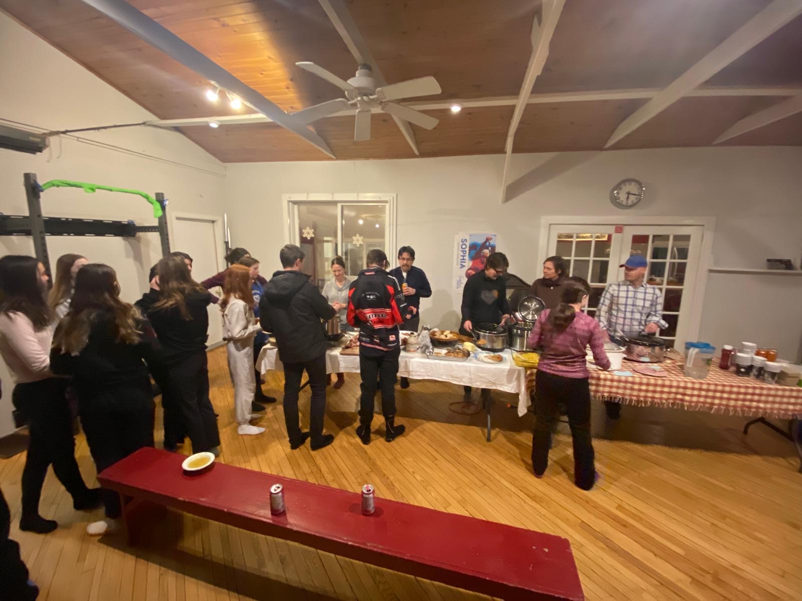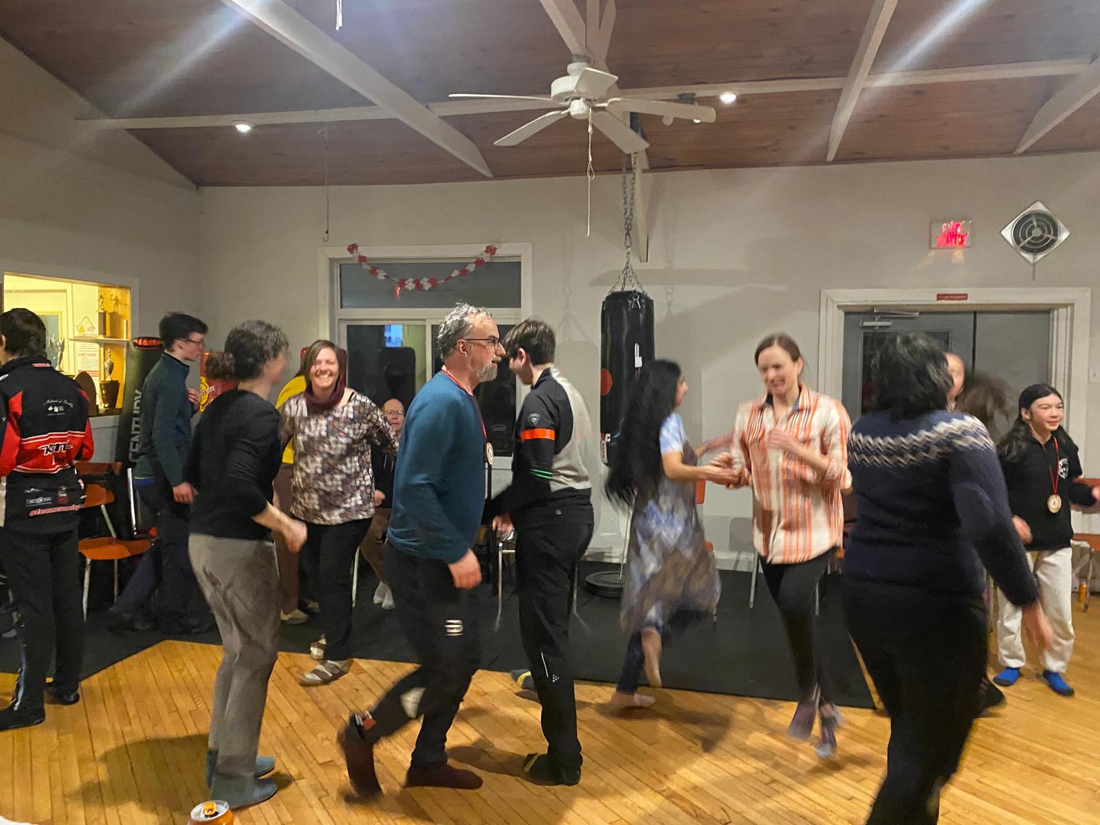 As the day drew to a close, we put on our skis and glided along the beautiful Gatineau River to the Cascades Club, which is part of a multi-sport trail built along an old railway track. The day ended with a delicious sugar shack meal, provided by our wonderful host parents, and the lively sounds of Acadian music. Greg and Dan started playing, and before long, everyone was dancing, guided by a professional dance leader who kept the energy high and the laughs flowing. We acknowledge the long distance that the athlete done last Saturday during our own marathon and, as a tradition in Chelsea Nordiq, we handed over medals to celebrate their milestone!