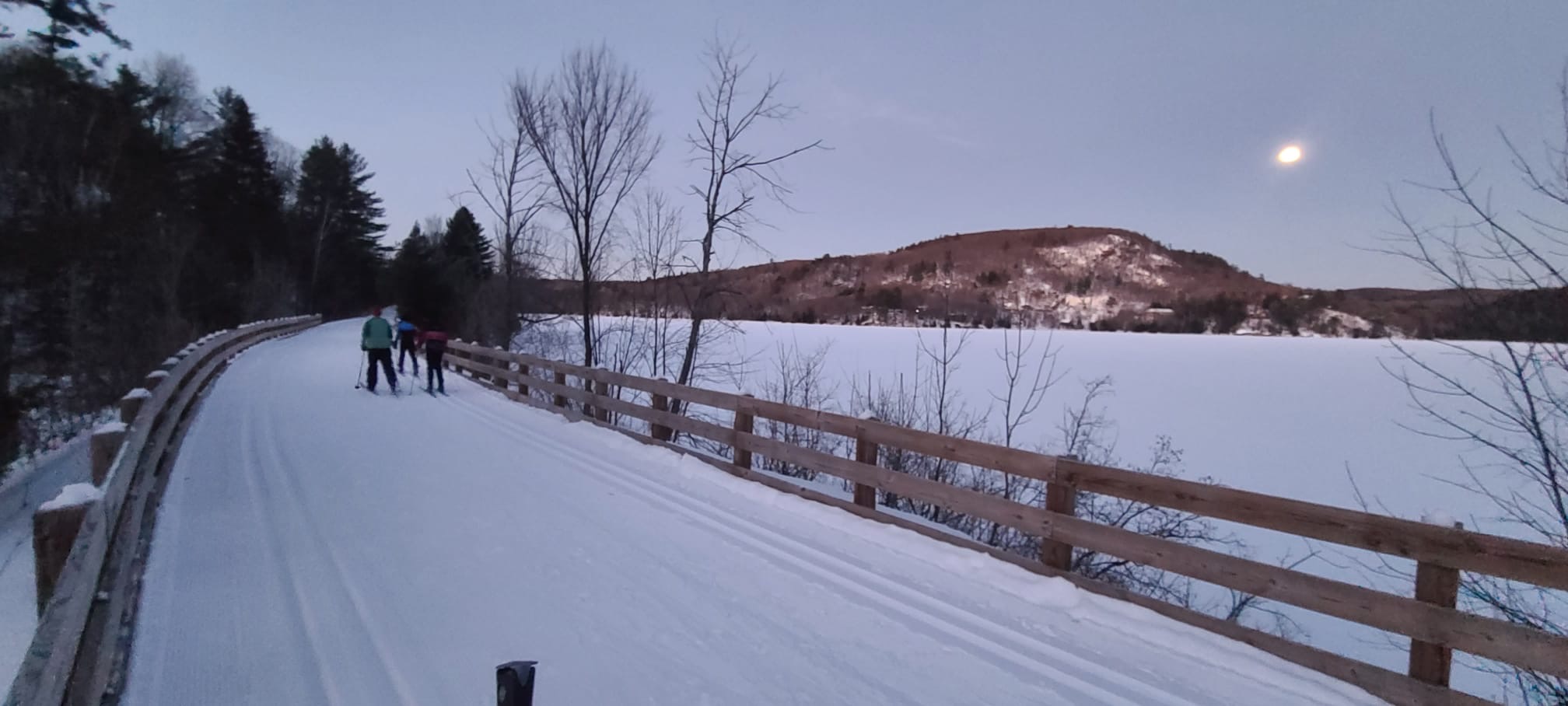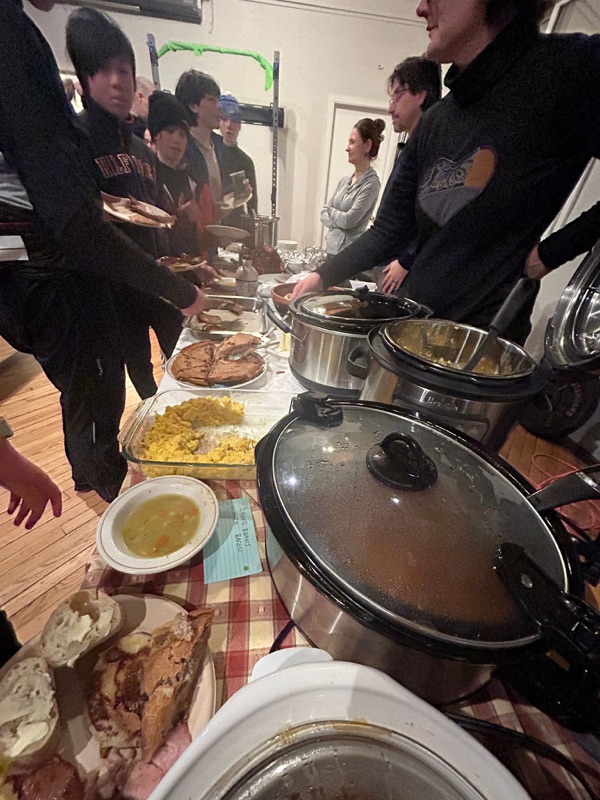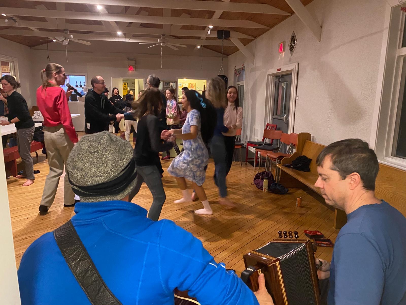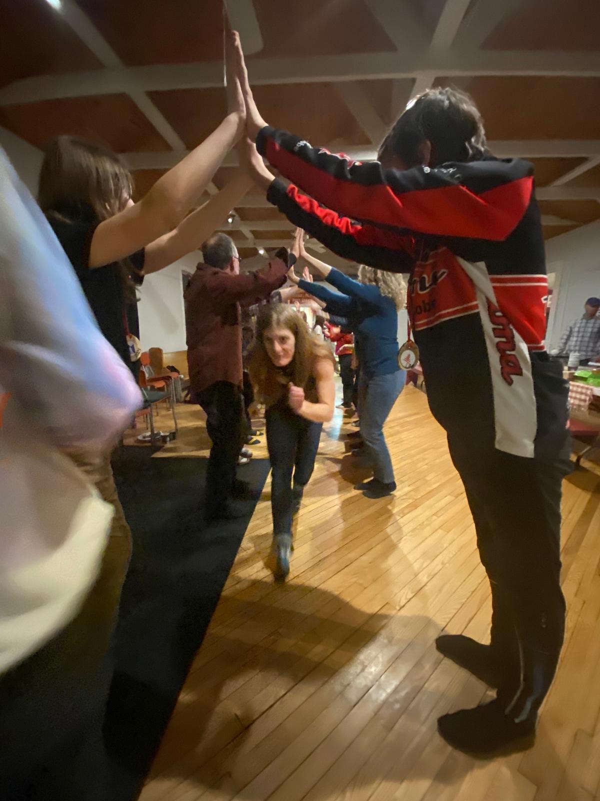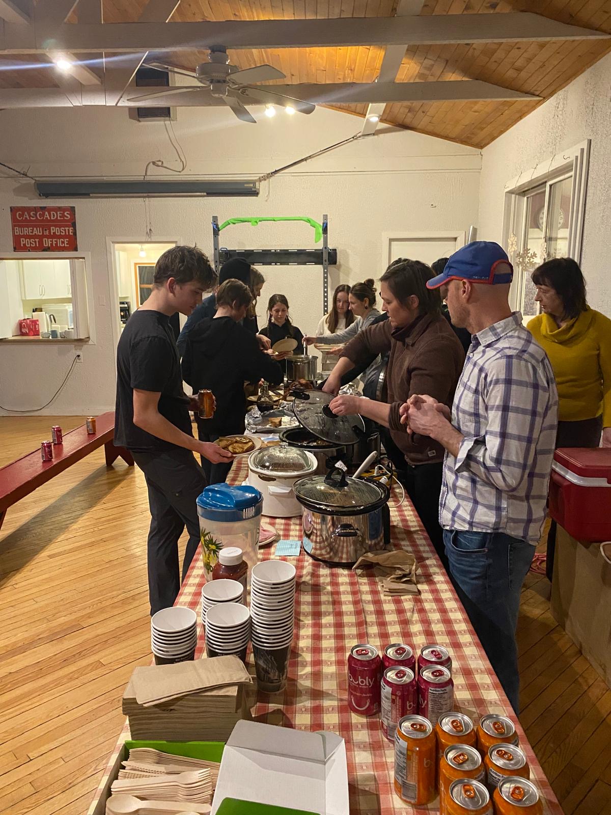 As the day drew to a close, we put on our skis and glided along the beautiful Gatineau River to the Cascades Club, which is part of a multi-sport trail built along an old railway track. The day ended with a delicious sugar shack meal, provided by our wonderful host parents, and the lively sounds of Acadian music. Greg and Dan started playing, and before long, everyone was dancing, guided by a professional dance leader who kept the energy high and the laughs flowing. We acknowledge the long distance that the athlete done last Saturday during our own marathon and, as a tradition in Chelsea Nordiq, we handed over medals to celebrate their milestone!